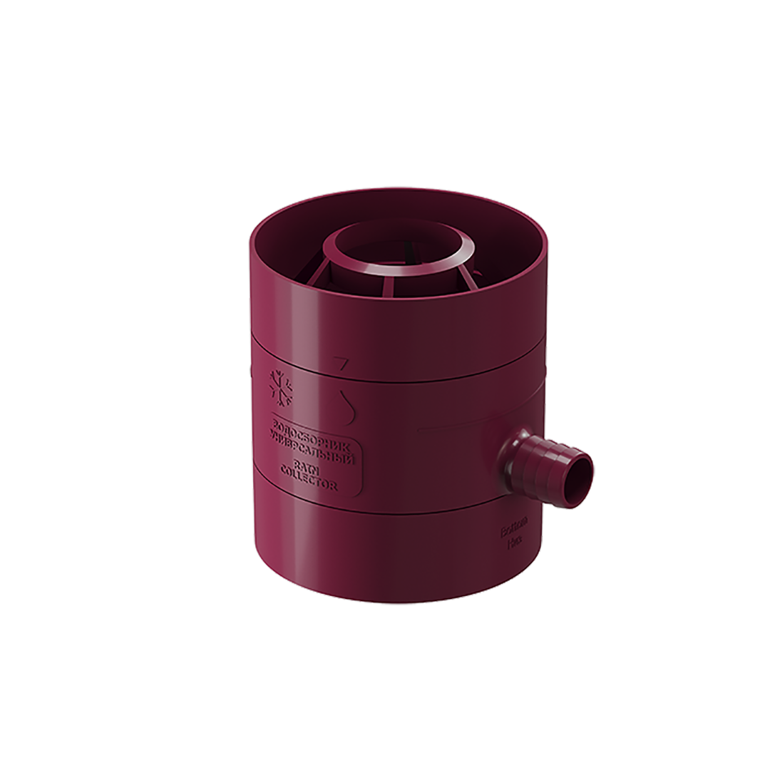 За счет конусообразной конструкции крышки и основания, водосборник подойдет для водосточных труб из пластика или металла от 80 до 110 миллиметров в диаметре.