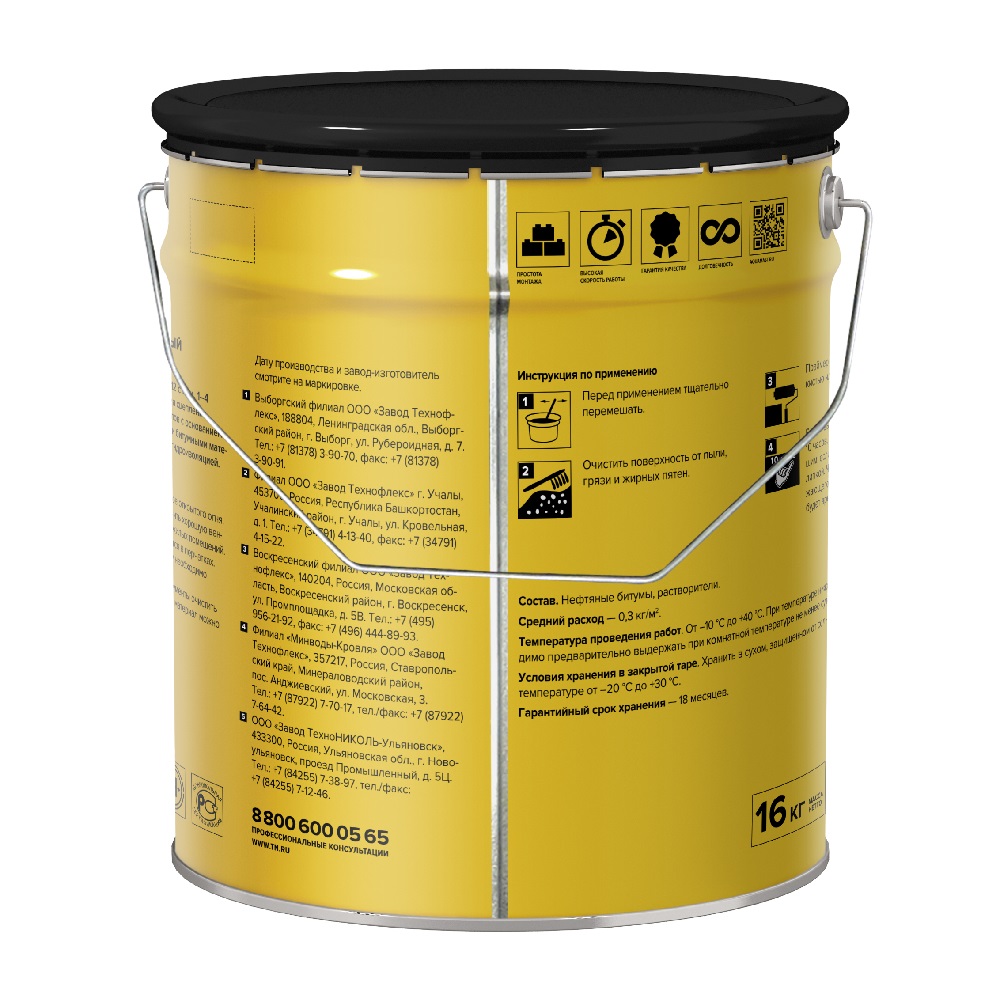 Описание товара: "Праймер Технониколь AquaMast битумный готовый, 16 кг"