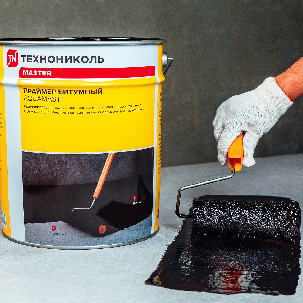 Наносится легко с помощью валика или кисти, не требует специальных навыков. Может использоваться как с рулонными битумными материалами, так и с мастичной гидроизоляцией.