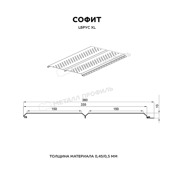Софит Металл Профиль перфор. Lбрус-XL-14х335 (ПЭ-01-3005-0.45)