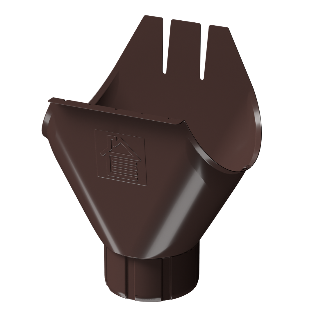 Воронка для водосточного желоба изготовлена из оцинкованной стали с полимерным покрытием, окрашенным в 4 варианта цвета на выбор, среди которых традиционный цвет «Шоколад».